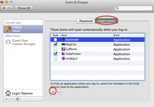 系统偏好设置>用户组与群组>个人登陆项(如图)