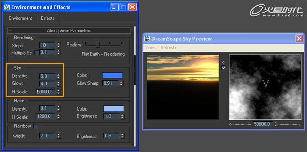 在Atmosphere Parameters中,改变Sky Density为5,Glow为4,以及H Scale为5000。(图06)