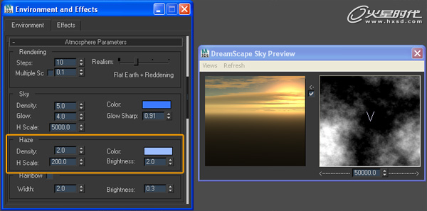 然后修改Haze Density为2,H Scale为200,和Brightness为2。(图07)