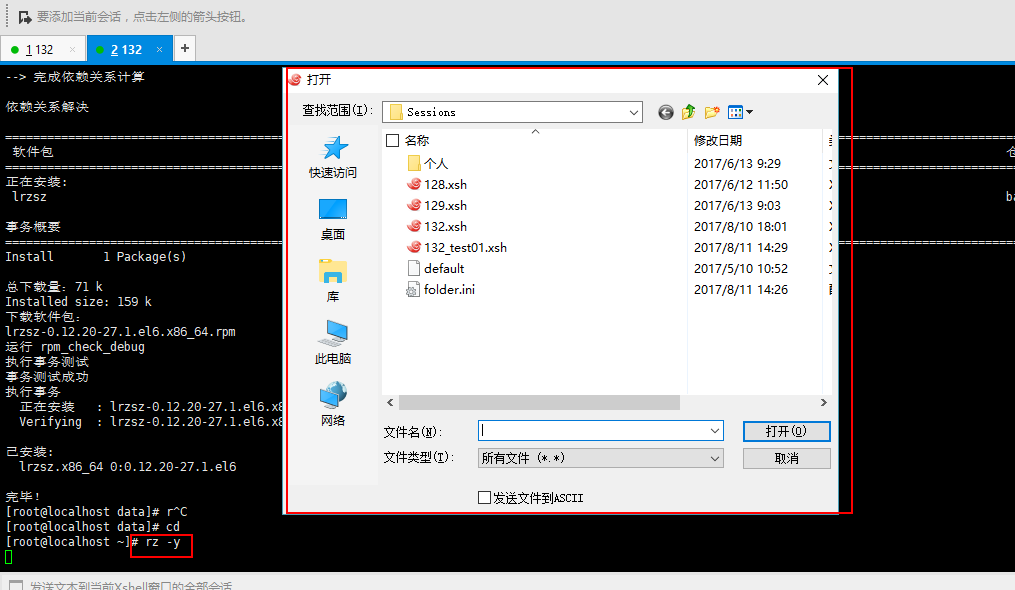 使用文件上传命令:rz -y;