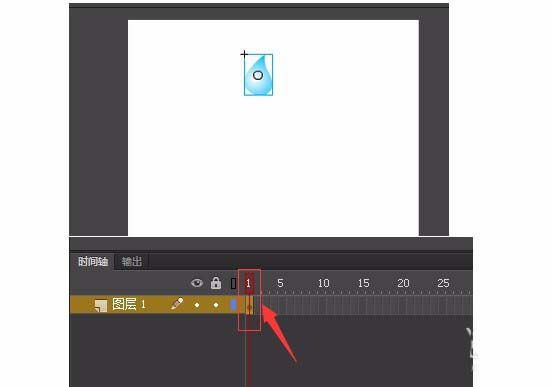 5、打开时间轴面板,第1帧让水滴在上面