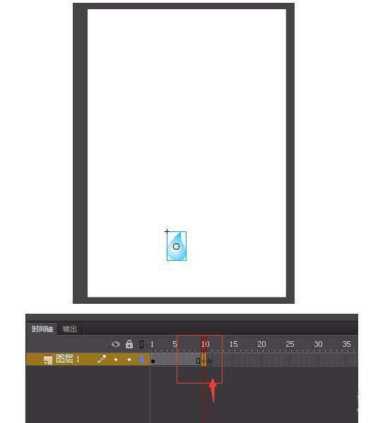 6、在第10帧,F6插入关键帧,按住shift垂直移动到下面