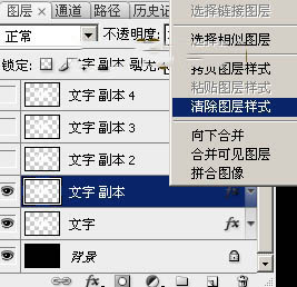 4、按Ctrl + J 把当前文字图层复制一层,然后在图层面板缩略图区域右键选择“清除图层样式”,效果如图7。