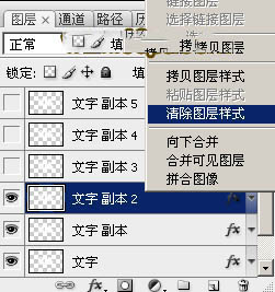 7、按Ctrl + J 把当前文字图层复制一层,然后在图层面板缩略图位置右键选择“清除图层样式”,效果如图11。