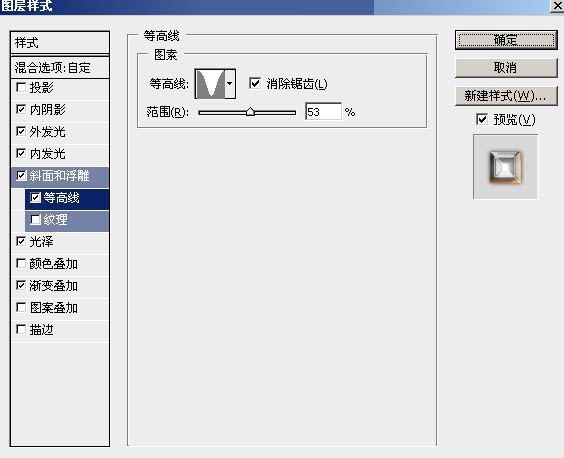 斜面和浮雕:样式“外斜面”,其它设置如下图。