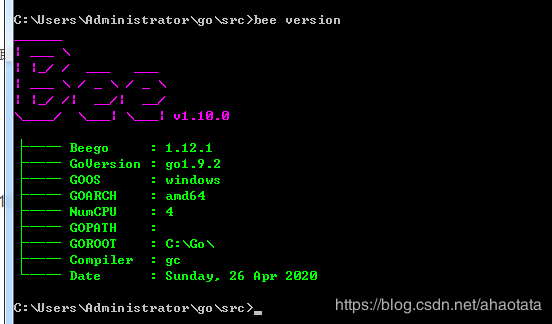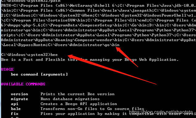 打开一个命令行输入bee有如上结果即可