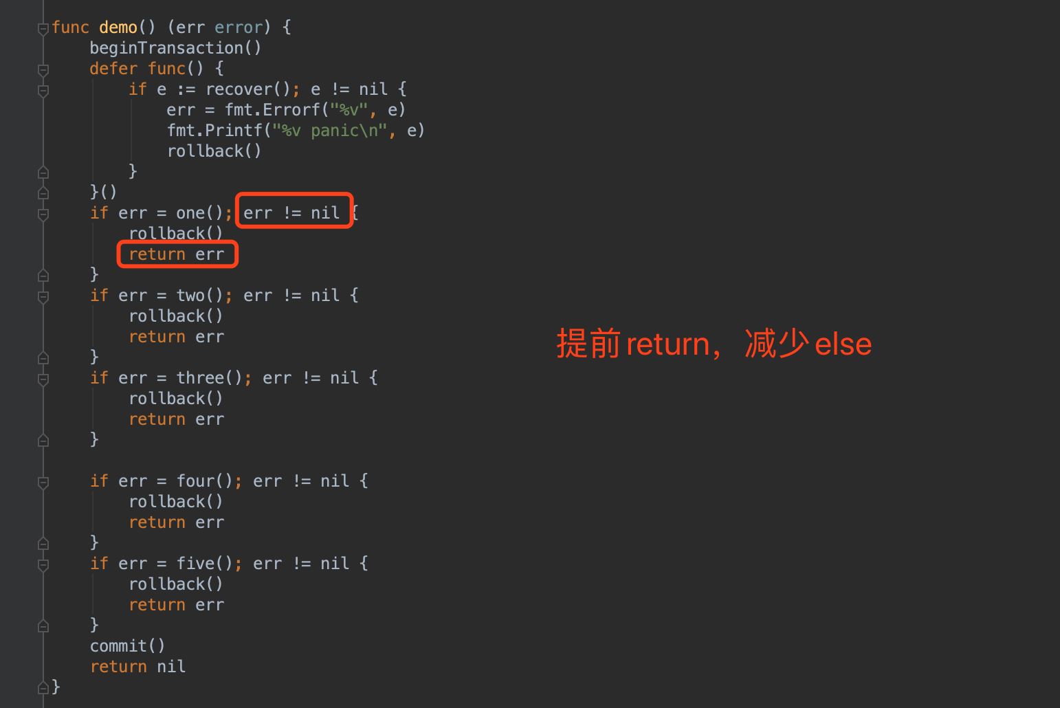 通过提前返回error,来去掉一些else代码,减少嵌套,如下