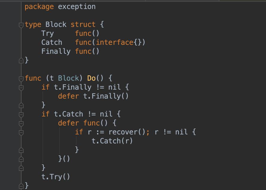 我们可以对panic和defer进行封装,模拟一下try-catch,实现如下