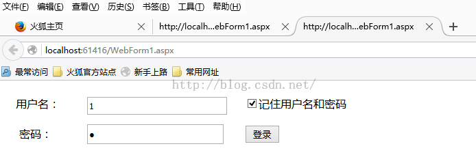 1、在VS新建一个的空白的asp.net应用程序,在项目管理器中,添加一个Web窗体;使用一个2行3列的表格进行布局;布局结束后,将2个Label控件分别置于布局表格的左侧,分别将其Text属性设置为用户名和密码,在布局表格中添加两个TextBox控件、一个Button控件和一个CheckBox控件,将Button控件的Text属性设置为“登录”,将CheckBox控件的Text属性设置为“记住用户名和密码”。
