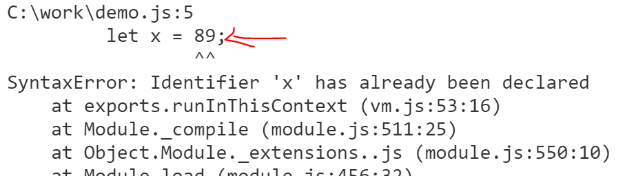 你不能在同一个函数或块中使用let重新声明一个变量。这样做会出现语法错误。请看以下代码: