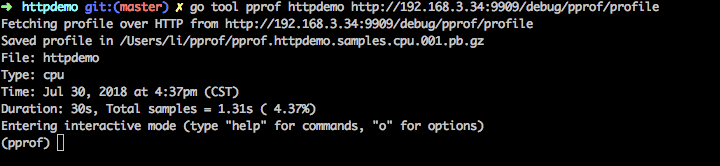 go tool pprof httpdemo http://192.168.3.34:9909/debug/pprof/profile
