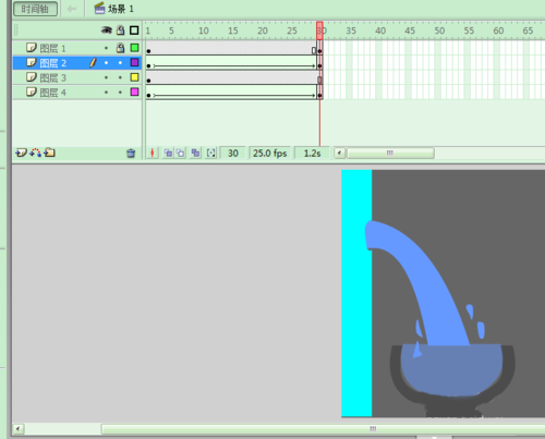 添加容器内的水然后添加关键帧,补间动画等;