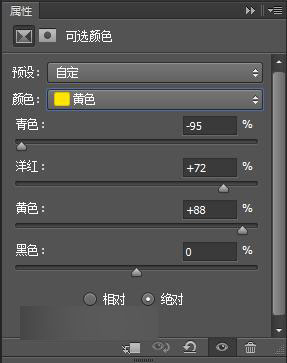 有人就要问了:叶子的颜色不是绿色,为什么我可选颜色是黄色?你们可以看看原图,在生活中人们定义叶子是绿色没错,但拿到PS修图里,可选颜色的绿色调动后影响并不大,反之调动黄色的时候会有很大的改变。