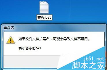 5、完成指令的编辑后,保存,关闭文本文件。然后,将这个文件的后缀名更改为”.bat“,重命名后会弹出警告,单击”是“按钮。此时,我们可以看到文件图标改变。双击这个图标,等程序执行完后,我们就会发现同类型的文件都移动到目标文件夹中了。