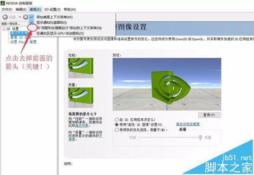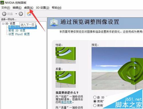 2、进入NVIDIA控制面板后,点击桌面菜单
