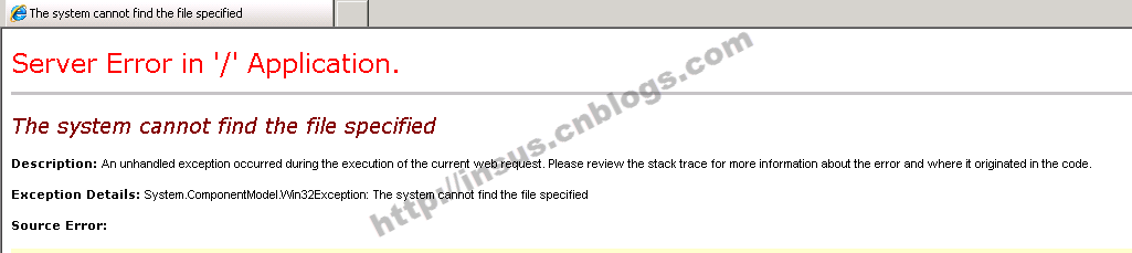 以上就是精明机器猫最近收集整理的关于ASP.NET The system cannot find the file specified解决办法的全部内容,更多相关ASP.NET内容请搜索靠谱客的其他文章。