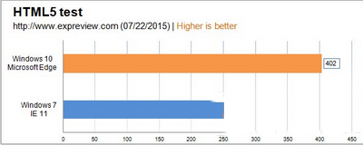微软Edge浏览器仅支持Windows 10系统,所以这项对比中Windows 7只能继续使用Internet Explorer 11浏览器,测试的都是HTML5与JavaScript相关项目。