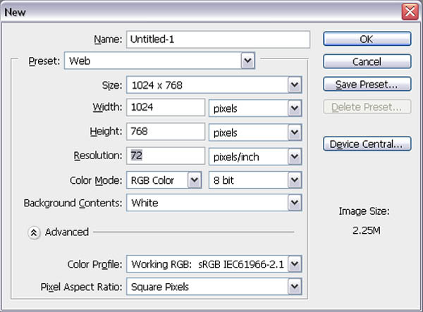 5、为了做出背景中圆点的效果,我们首先要创建一个自定义的形状,并将其保存为图案。然后,我们会用这个圆点形状生成背景圆点的图案效果。创建一个新文件对它进行以下设置。
