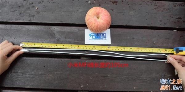 小米MFi Lightning线通过卷尺实测得到长度在105厘米左右,比标称的1米略长。
