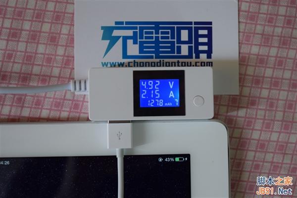 小米MFi Lightning线给new iPad充电(剩余电量43%),4.92V 2.15A,合计10.578W。