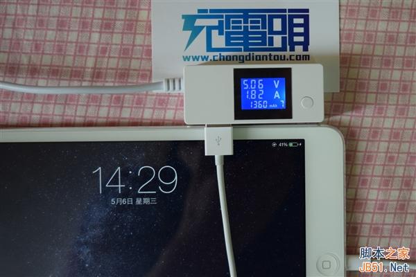 小米MFi Lightning线给iPad mini充电(剩余电量41%),5.06V 1.82A,合计9.2092W。