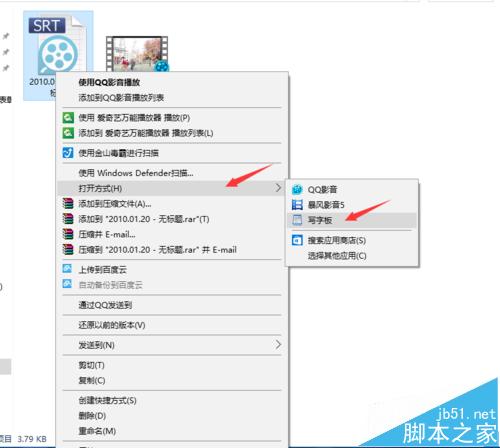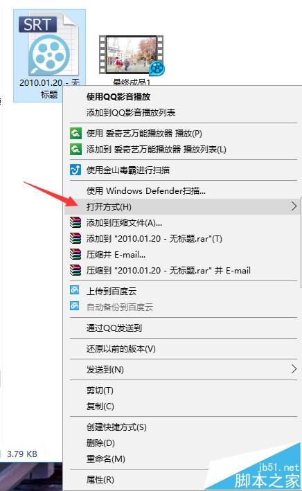 1、找到SRT格式的文件,右键选择打开方式,如图所示