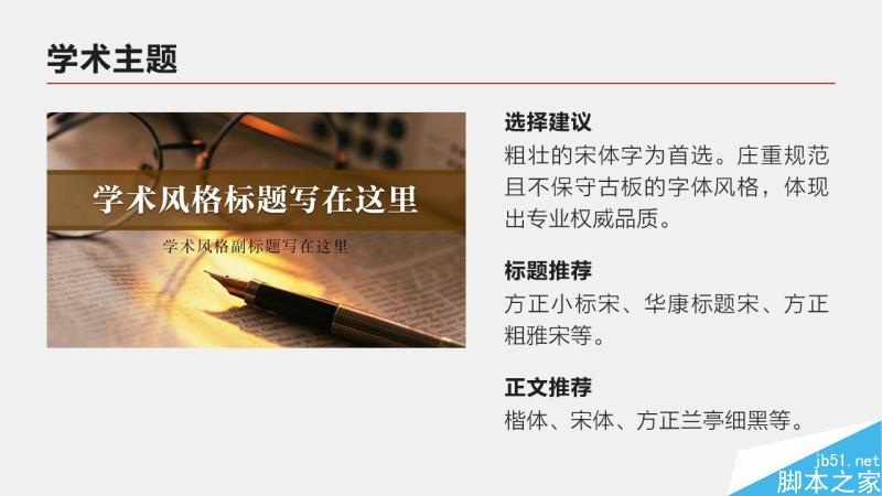 学术主题同党政主题有类似的地方,也是偏向于稳重严肃,但同时也需要体现出学术气息。