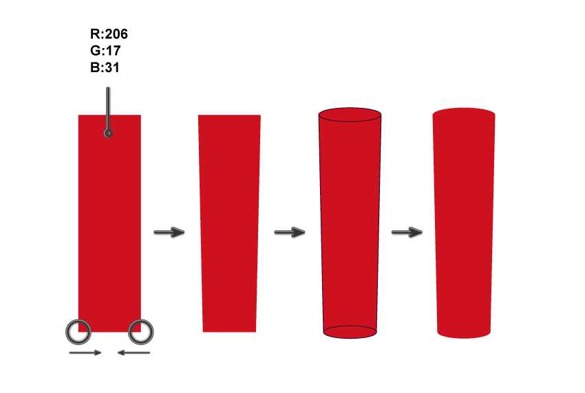 第一步:创建一个850 x 850像素的画布。(注意:为了能够精确地移动的物体,需要启用智能参考线,视图>智能参考线)使用矩形工具(M)画相连的三个矩形。填充颜色如下图所示。中间的矩形的颜色稍浅。然后选择所有三个矩形,去效果>变形>凸出。在新的窗口中输入如下参数: