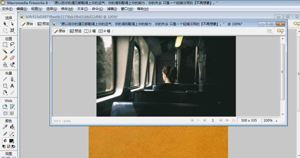 制作一张好看的图文但是又要简单操作的话,我是建议先找好素材哦,比如说我先找好了一张素材图片,然后用fireworks打开即可,大家可以看到左边的工具栏,是不是和ps差不多的呢。