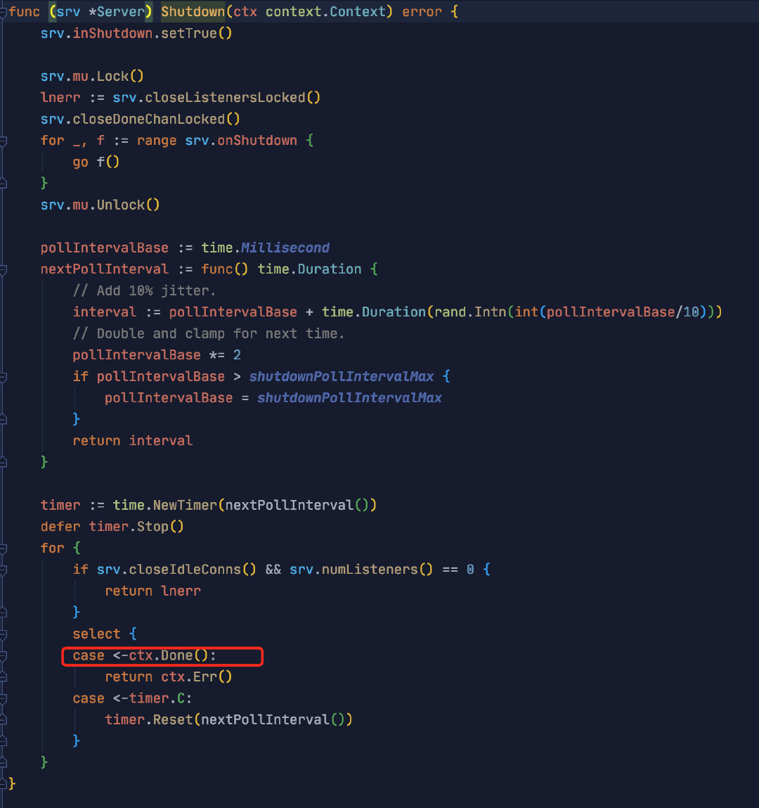 Gin 提供的 Shutdown(ctx) 函数也充分使用了 context。