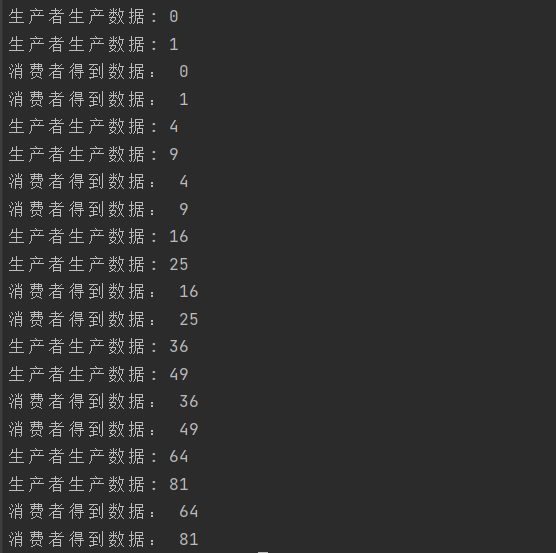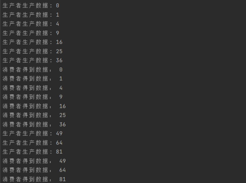 生产者每一次生产,消费者也只能拿到一次数据,缓冲区作用不大。结果如下: