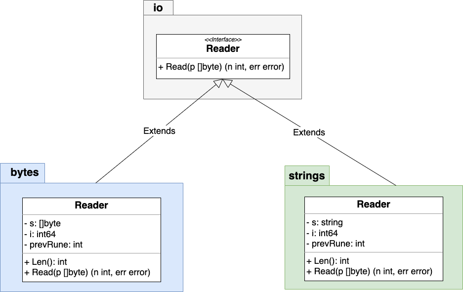 在调用 NewReader 的时候,会返回了对应的 T.Reader 类型,而它们都是通过 io.Reader 扩展而来的,所以也就实现了转换。