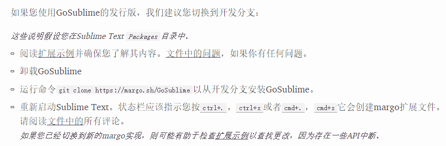 安装器没有找到gosublime,通过一通google。发现gosublime当前分支不支持自动安装