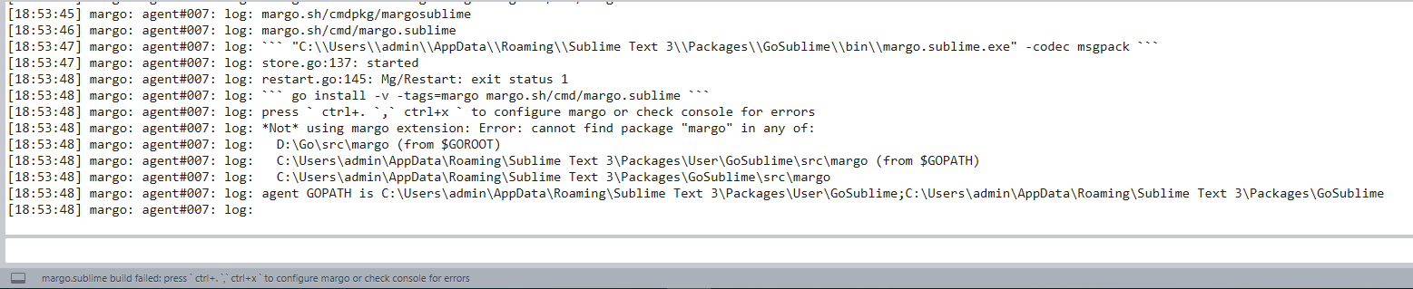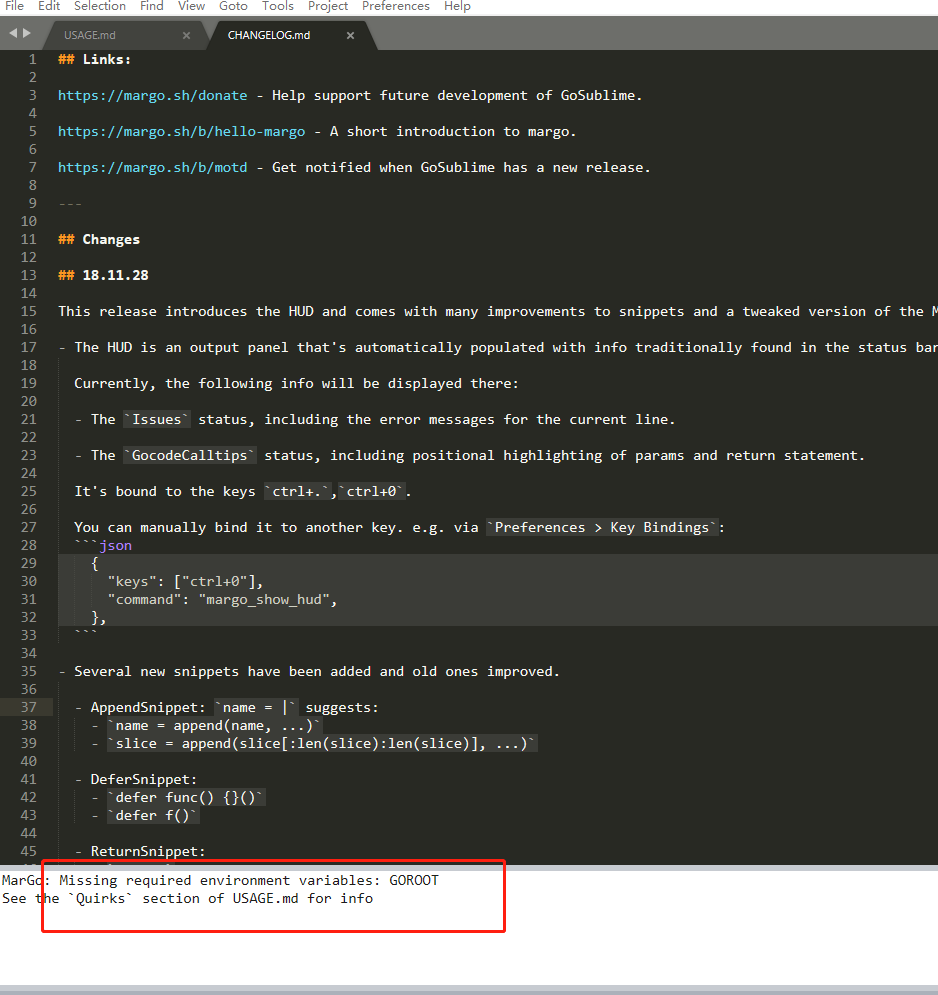 下载完后,sublime会自动检测到插件并进行安装。如果没有安装go语言环境,会报错