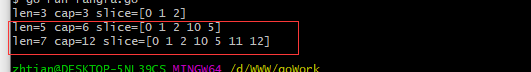 那么切片的长度变为相加之和,容量变为原来的2倍(图片一的第二行结果)