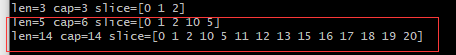 //通过append给numbers增加信息,如果当前切片的长度小于容量,增加信息的长度与当前长度和小于等于容量,