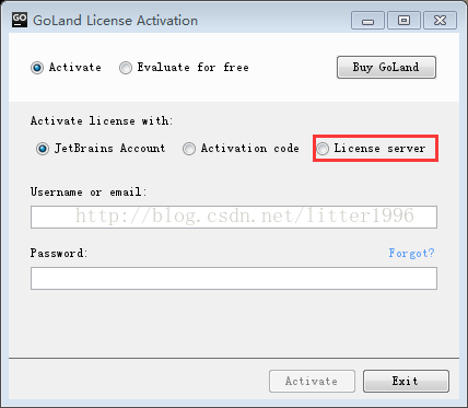 重新打开goland,选择 License server