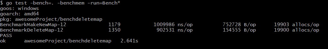 从测试结果上看,好像确实delete的方式效率更高,但是这个benchmark中总感觉没有测试到真正清空map的地方,中间穿插着put map的操作,我们用方法2再测一下。