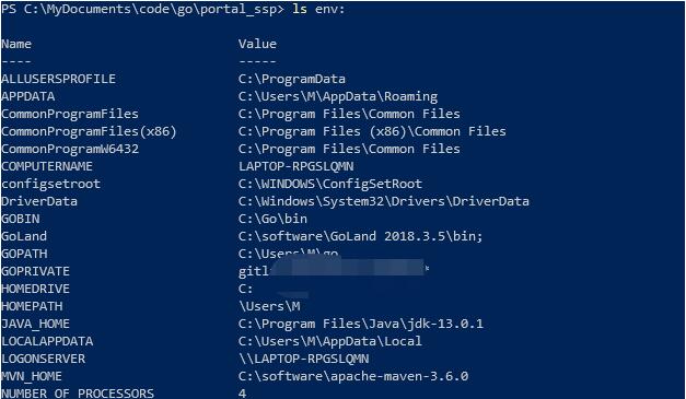 使用的是windows的powershell ls env: 显示环境变量 $env:GOPRIVATE="gitlab.XXXX.com/XXX/*" 设置环境变量