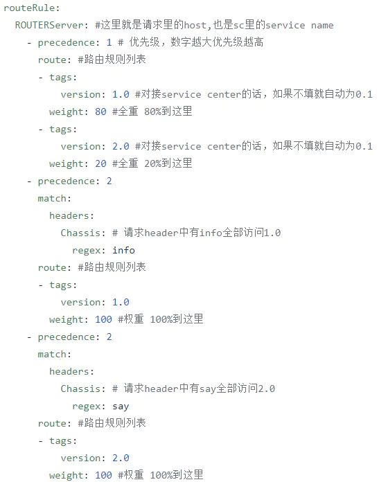 但是有一类配置项并不适合如此管理,这就是第二种方式,比如go chassis中的路由管理配置文件: