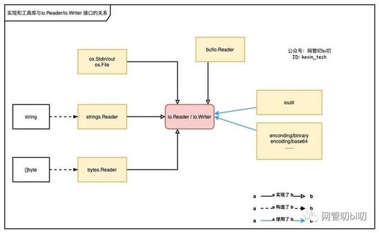 这些常用实现和工具库与io.Reader和io.Writer间的关系可以用下图表示。