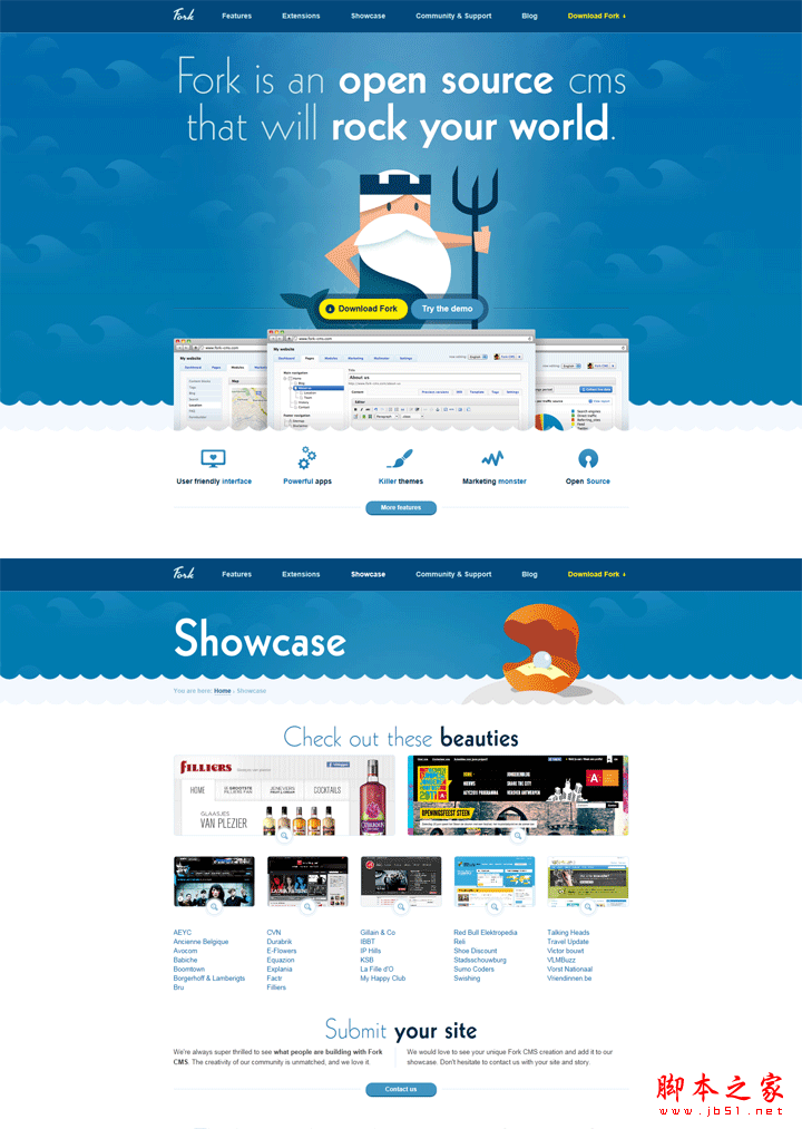 提到招行人们会想到向日葵,提到腾讯人们会想到企鹅,提到Mailchimp人们会想到邮递员monkey,现在提到Fork,人们应该会想到这位可爱的坐在小船上拿叉的老渔夫了。也许它的logo不起眼,但是有了这个代言人的衬托,这个工具,实在让人难忘了。如果你再仔细翻看一下,会发现在几个内页中,都有与这个大海主题相关联的插图设计。看到这些,即使你是一路人,会不会好奇到忍不住点download来用用?