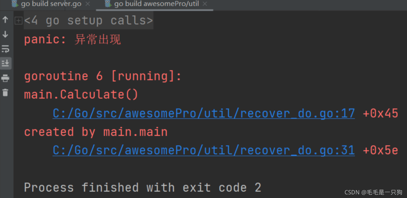 以上就是虚心钢笔最近收集整理的关于小学生也能看懂的Golang异常处理recover panic的全部内容,更多相关小学生也能看懂的Golang异常处理recover内容请搜索靠谱客的其他文章。