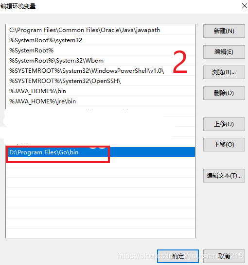 在系统变量中找变量名为Path的变量,点击编辑,并加入D:Program FilesGobin(你的安装地址Gobin)。
