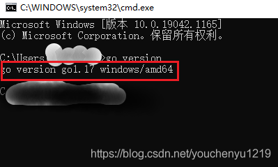 打开命令行模式,输入Go version,出现下图表示Go语言安装成功。