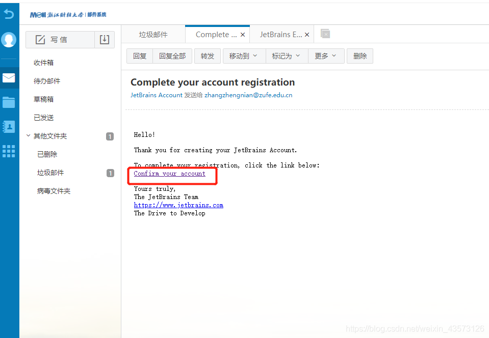 大约5-6分钟后,收到邮件,点击相应指示信息