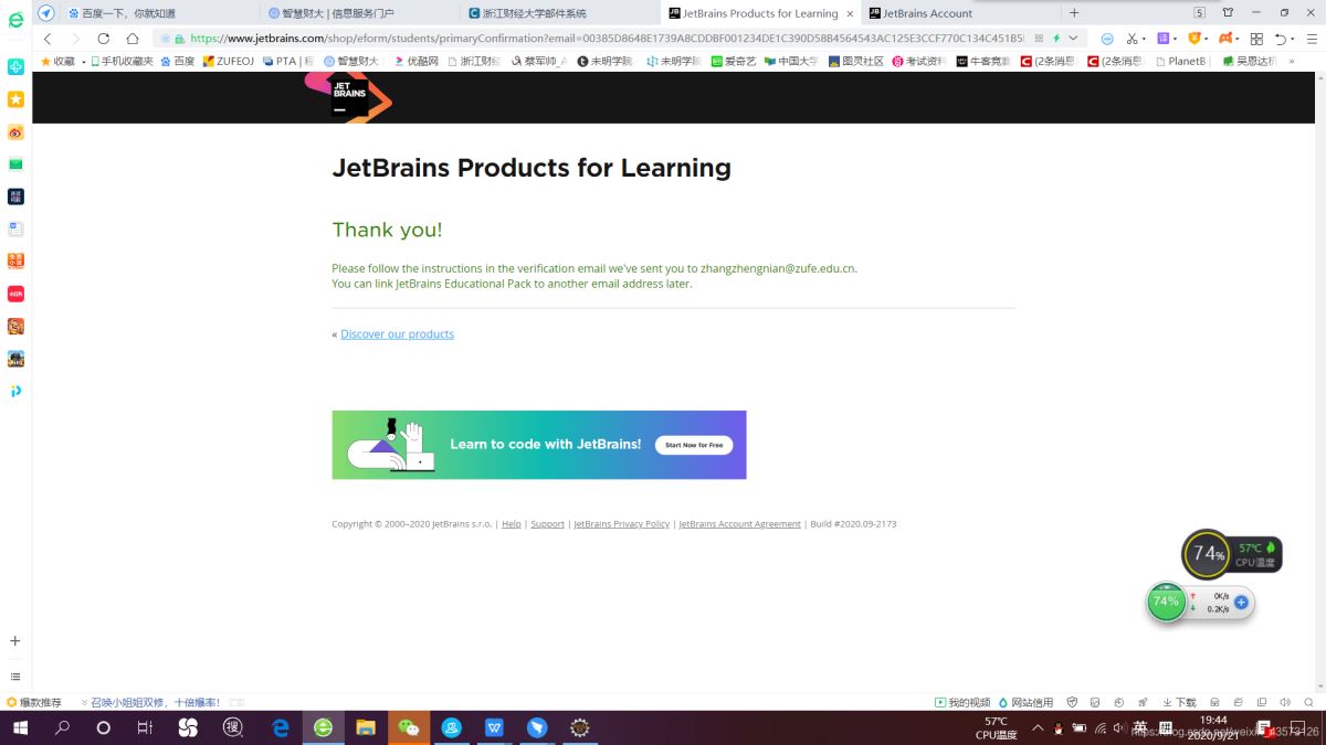 最后输入教育邮箱,密码后点击activate即可激活