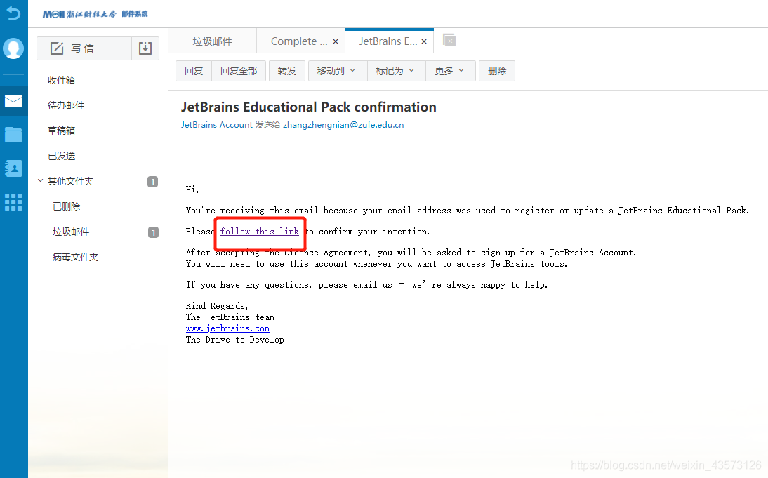 5-6分钟后,收到相应的邮件,点击follow the click
