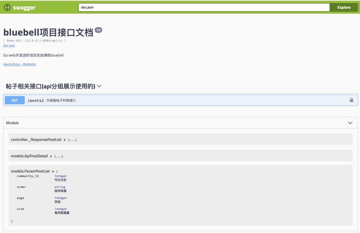 import ( // liwenzhou.com ... _ "bluebell/docs" // 千万不要忘了导入把你上一步生成的docs gs "github.com/swaggo/gin-swagger" "github.com/swaggo/gin-swagger/swaggerFiles" "github.com/gin-gonic/gin" )