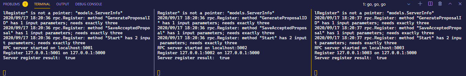 这里我一共开启了3个服务实例,并在每次请求之前加入了随机的延迟,模拟网络通信中的延迟,因此每个服务的每个请求并不是同时发出的